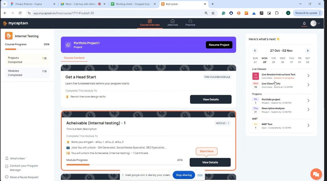 Once it opens up the respective Module page, scroll to the Live class are looking to attend